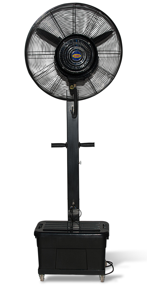 Perfect for outdoor events This 6.5 feet tall fan sprays a mild mist into the air, helping reduce room temperatures. The intensity of the mist can be regulated as per your preference. It is recommended for outdoor use.
